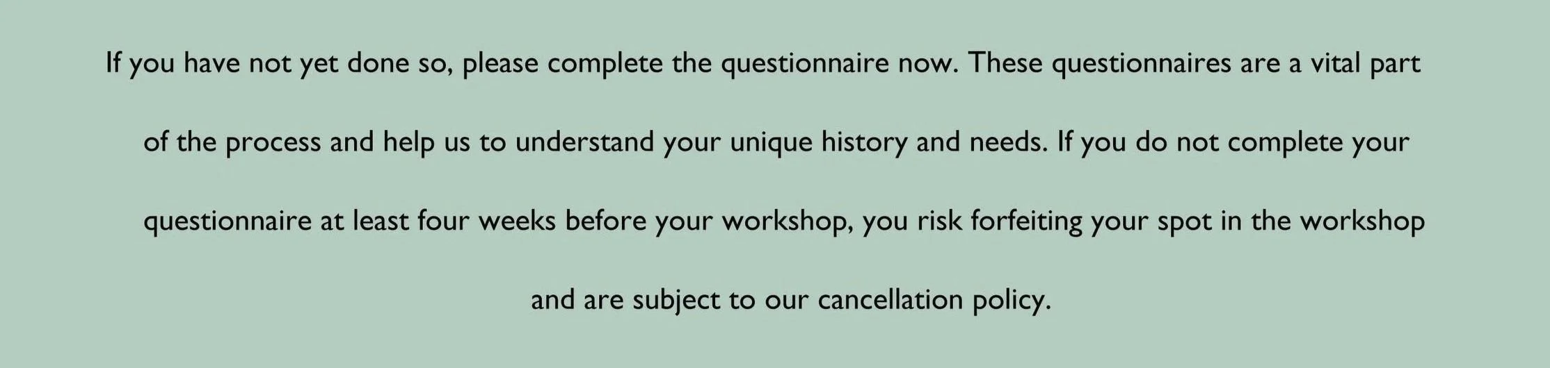 ◇ You must stay on site for the entire workshop- until departure- or your workshop will not be considered complete, which will affect your ability to staff or participate in future workshops.